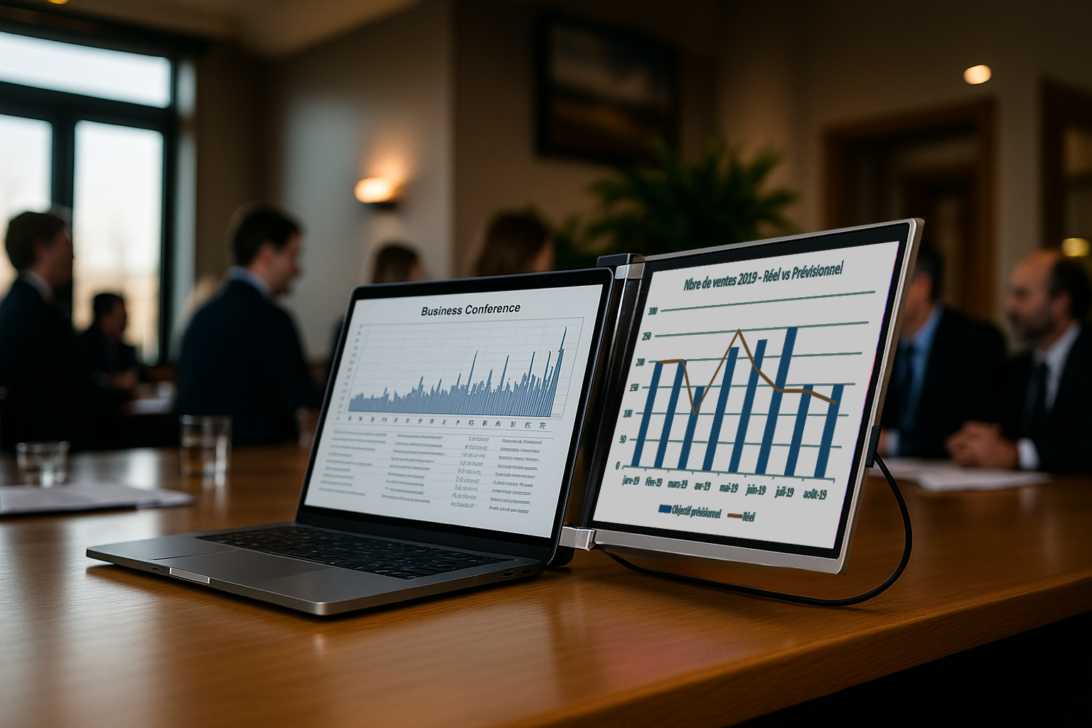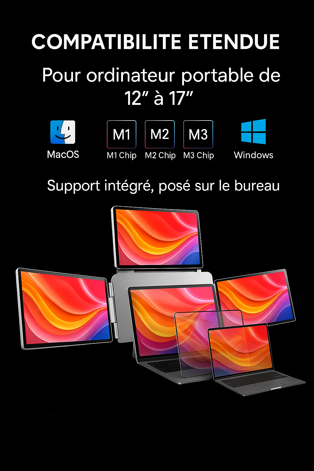 Que vous soyez dans un café, votre salon ou un open space, nos moniteurs portables s'intégrent parfaitement d votre environnement et vos déplacements..