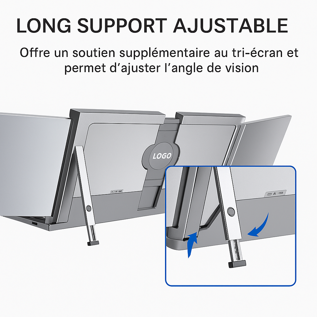 Le pied de support ajustable offre une stabilité optimale sur toutes les surfaces. Il assure un maintien solide de lʼécran, même lors dʼune utilisation prolongée ou en déplacement.