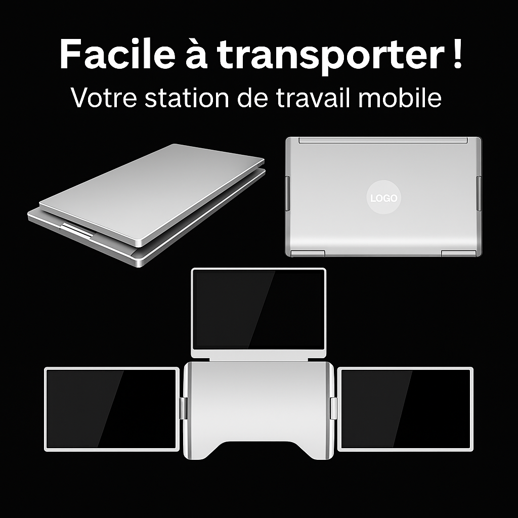 Léger et pliable, ce triple écran est pensé pour les professionnels nomades. Glissez le dans votre sac et déployez le en quelques secondes, au bureau, à la maison ou en voyage.