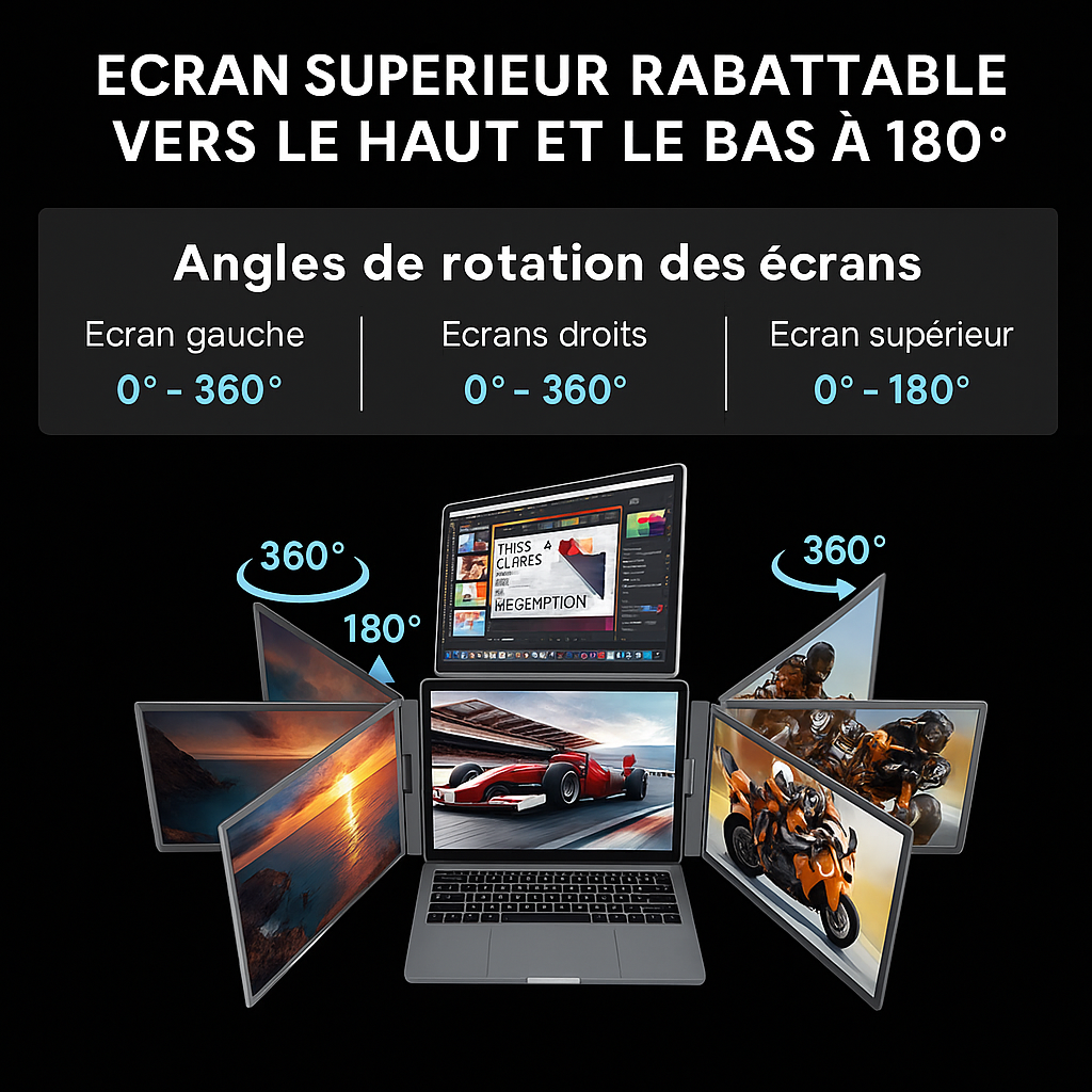 Optimisez votre flux de travail avec triple écran en plus qui s'adapte à tous vos logiciels professionnels. Que vous utilisiez des outils bureautiques, de création ou de gestion, profitez d'un espace étendu pour gagner en efficacité et en confort.