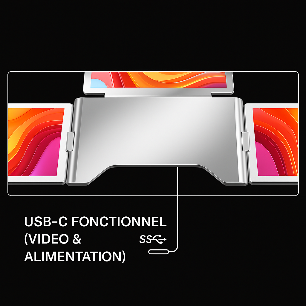Optimisez votre flux de travail avec triple écran en plus qui s'adapte à tous vos logiciels professionnels. Que vous utilisiez des outils bureautiques, de création ou de gestion, profitez d'un espace étendu pour gagner en efficacité et en confort.